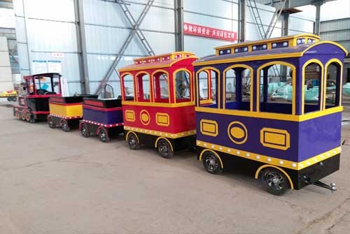 Shopping malls trackless train is a kind of small train equipment without track, which is powered by rechargeable batteries. Trackless train is environmental protection. Use high quality fiberglass cabins, environmental protection and durable! The antique style train is very popular in today's fashion elements. The train includes several wagons, and there are many sets of tires under the wagons.It can run on any flat road. The running range is more extensive, not restricted by the site. Trackless train can be used indoors and outdoors, very popular in large business center, square, scenic area and so on.